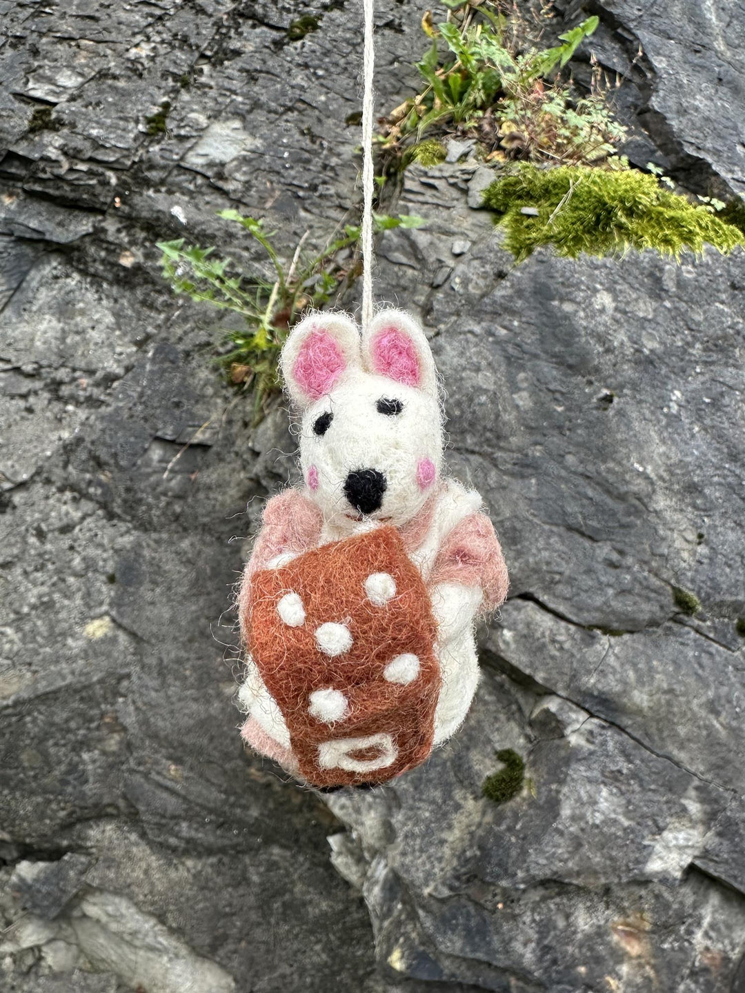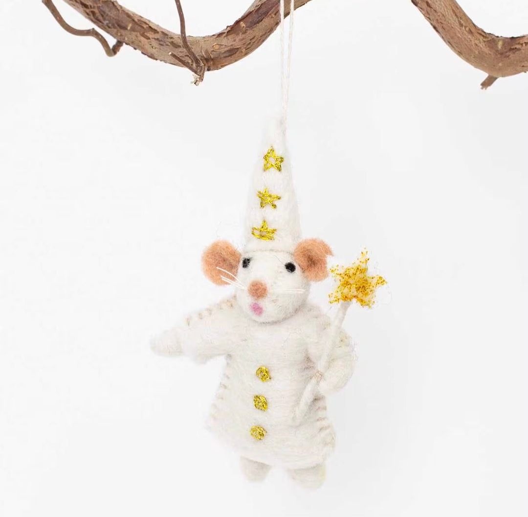 Juletrepynt mus med brunt pepperkakehus