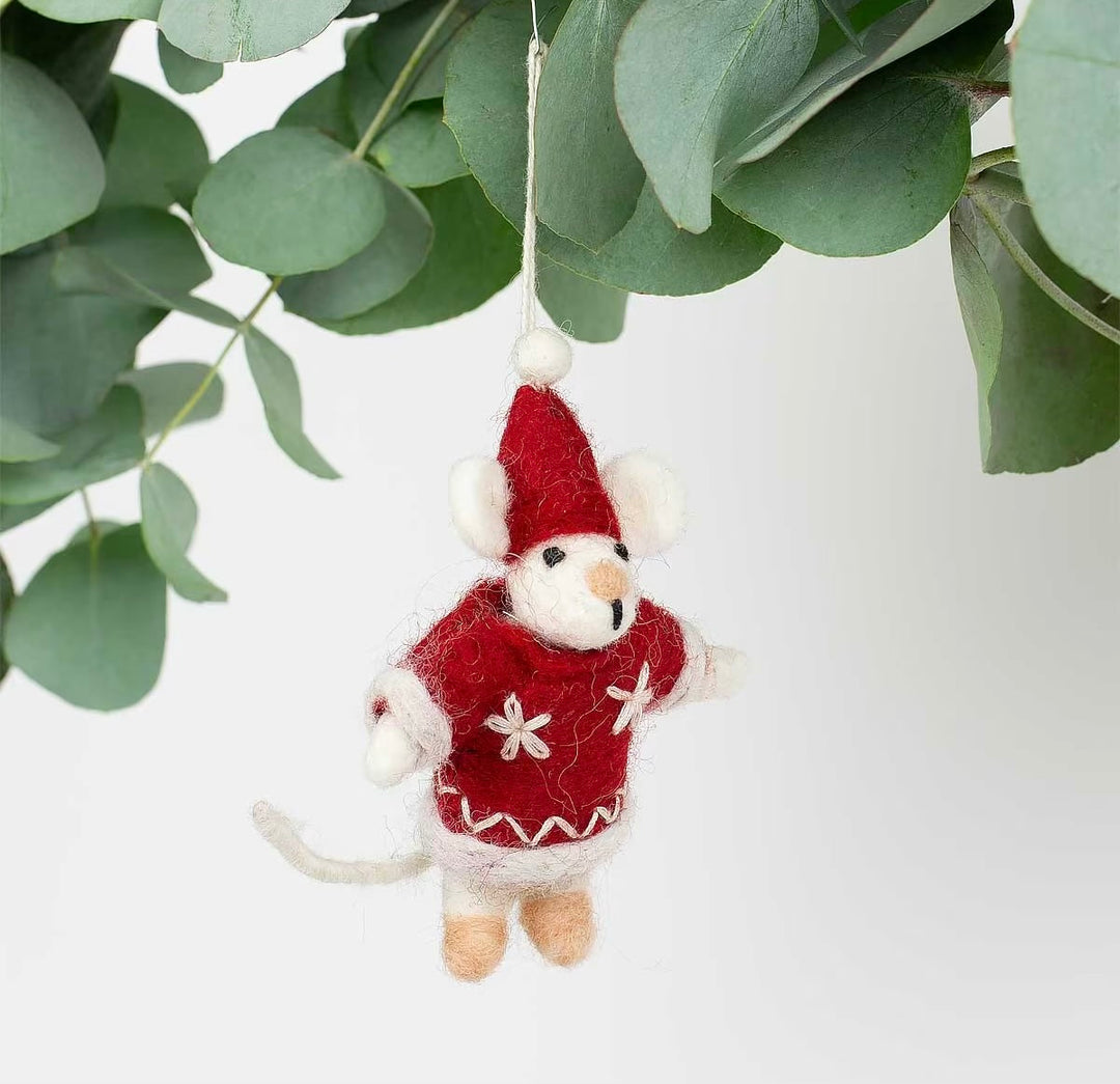 Juletrepynt musenisse med rød hatt og jakke