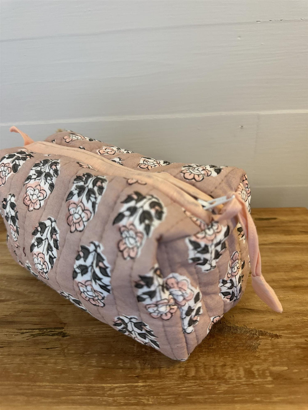 Sminkepung blokktrykket Fleur pink