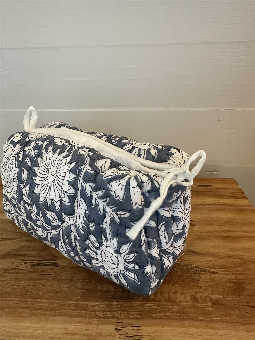 Sminkepung blokktrykket ink blue terracotta