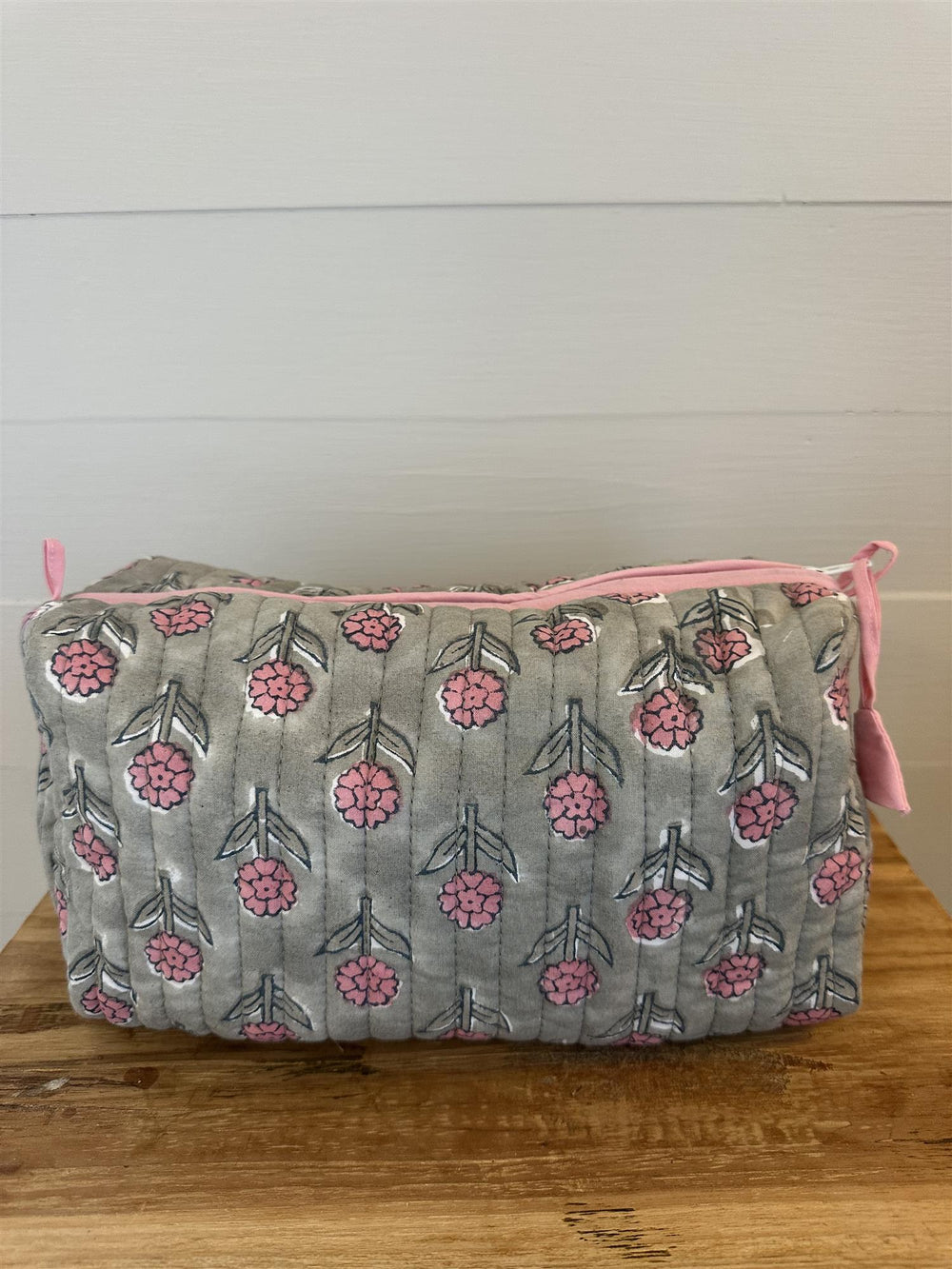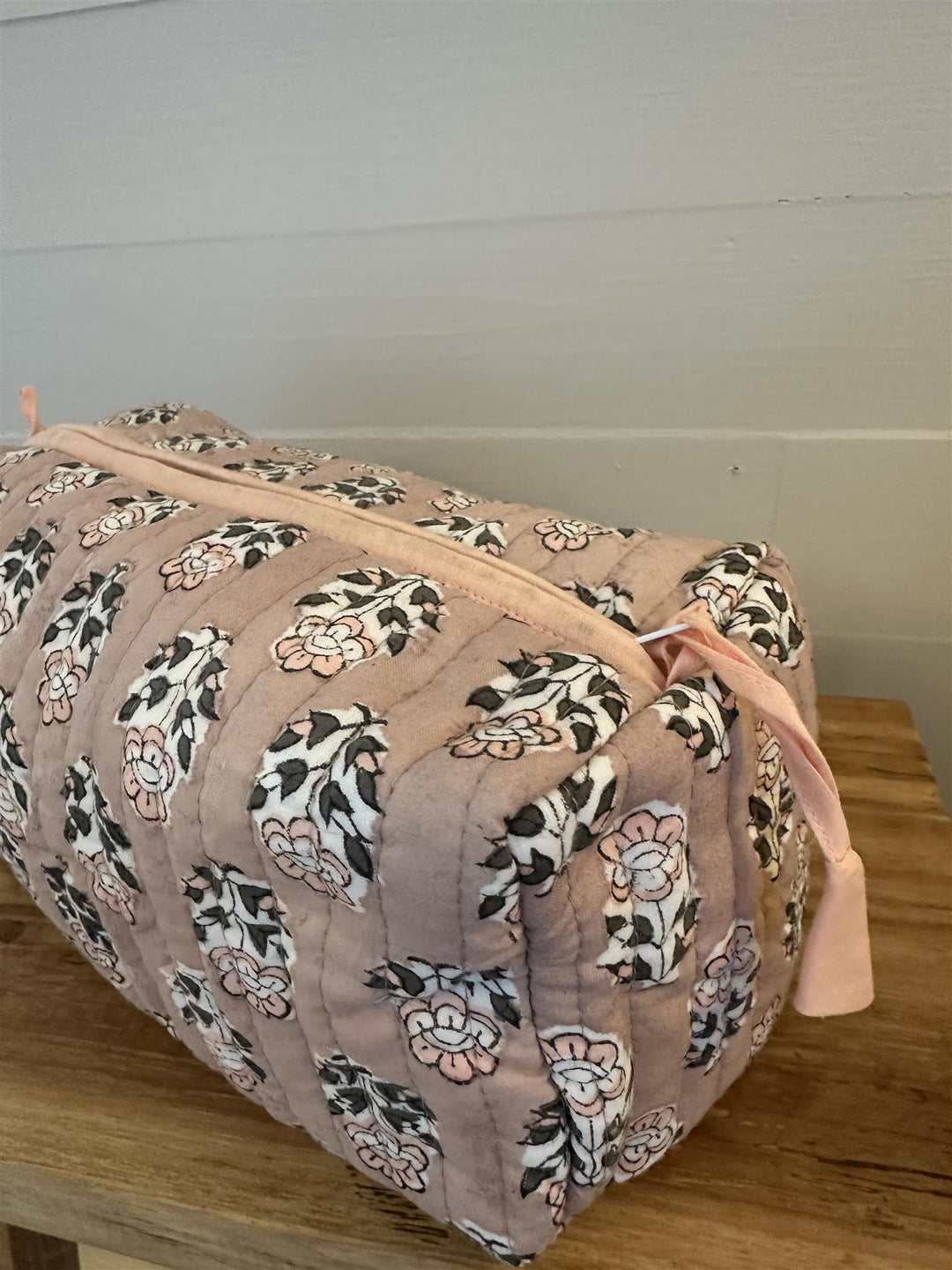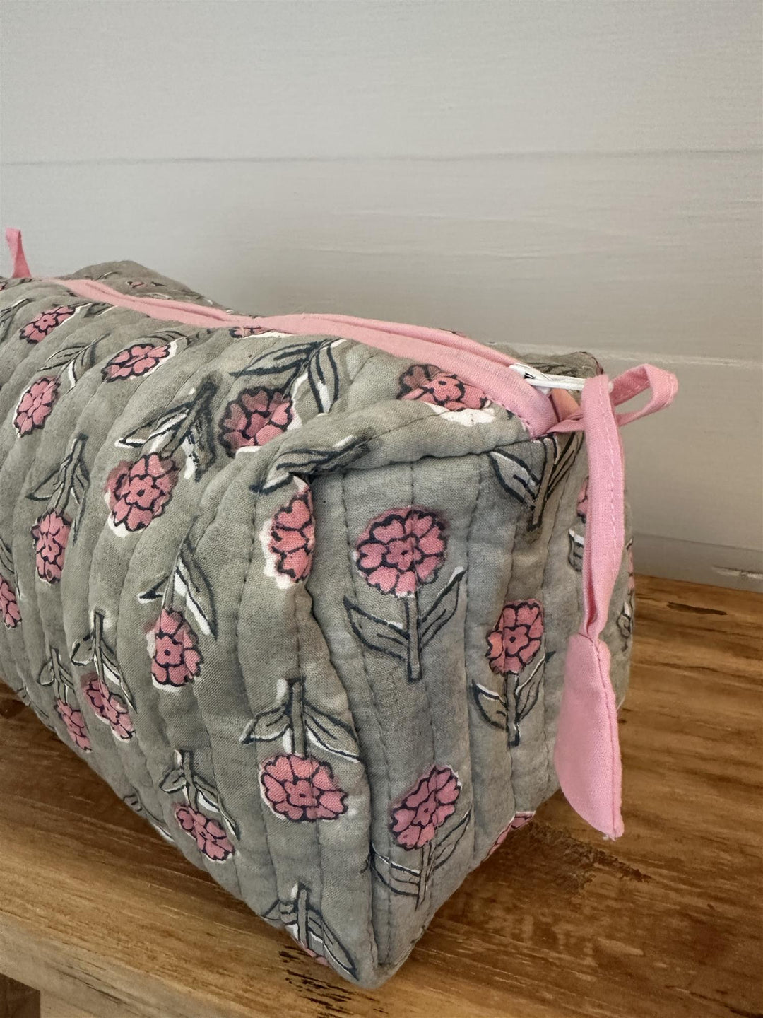 Toalettmappe blokktrykket pink flower