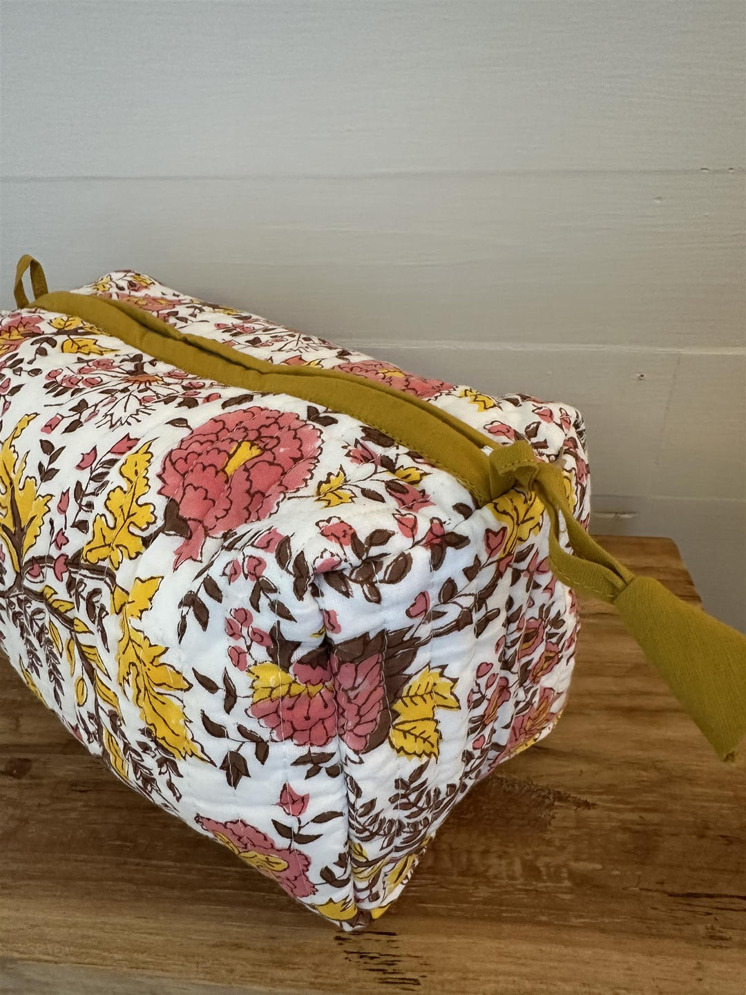 Toalettmappe blokktrykket Fleur yellow