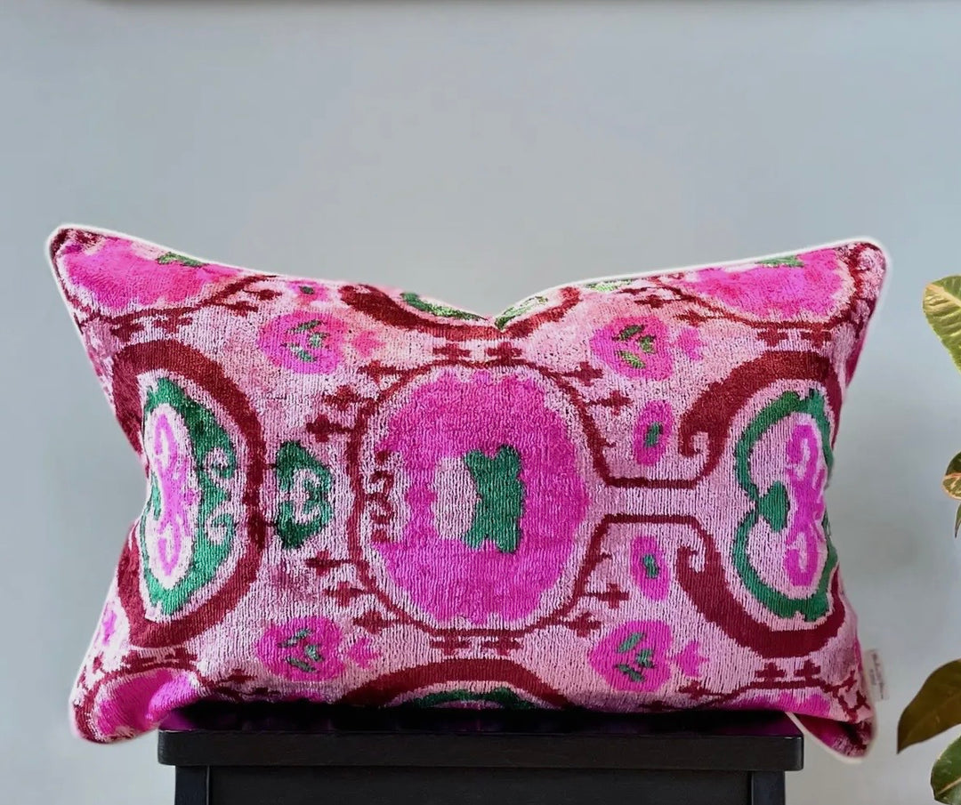 Velvet ikat putetrekk flamingo 40 x 60 cm