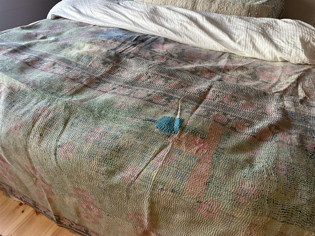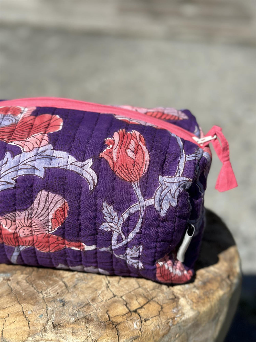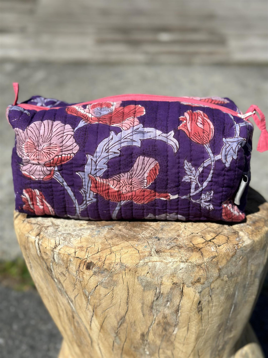 Toalettmappe blokktrykket NY granateple med pink detaljer