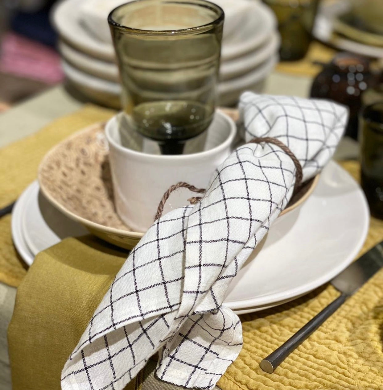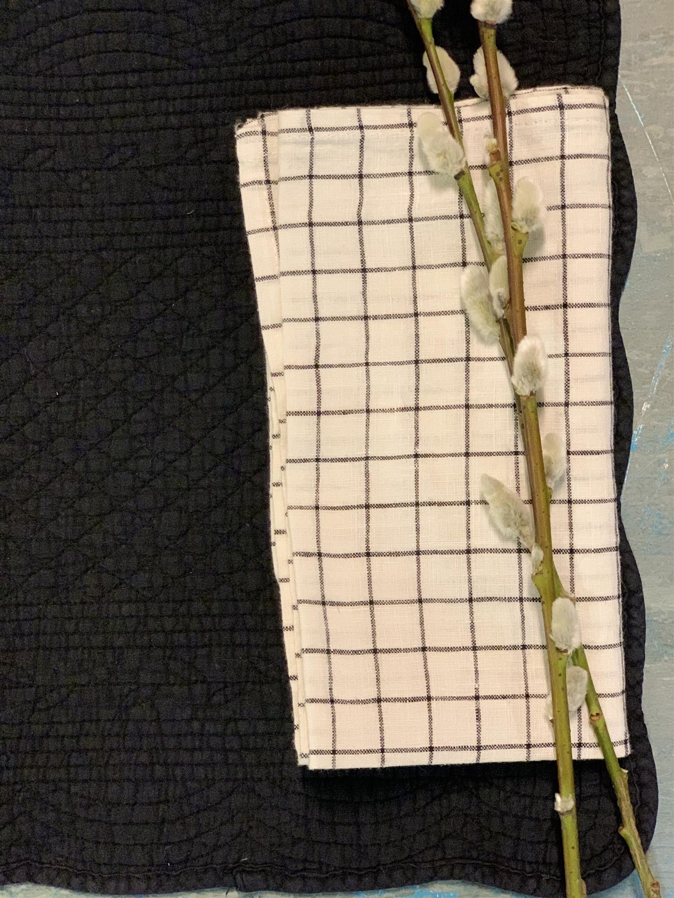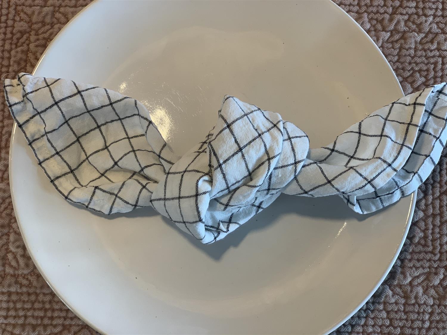 Rutet linserviett med enkel kant.