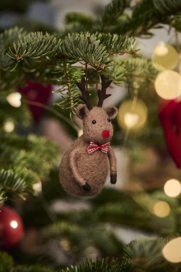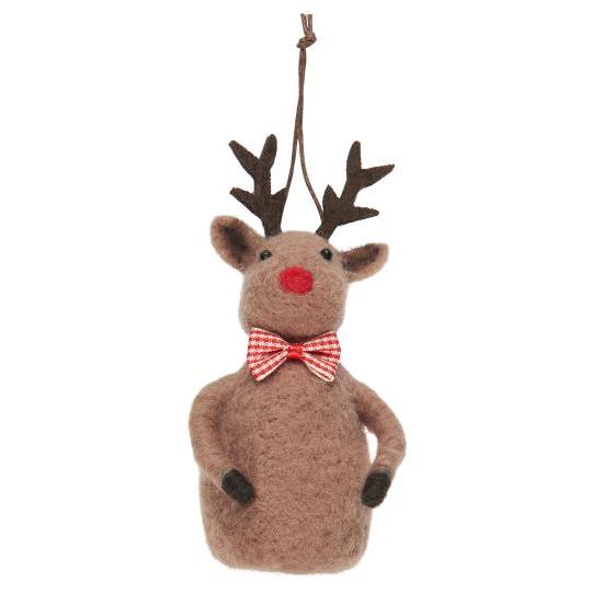 Reinsdyret Rudolf i filt til å henge på juletreet.