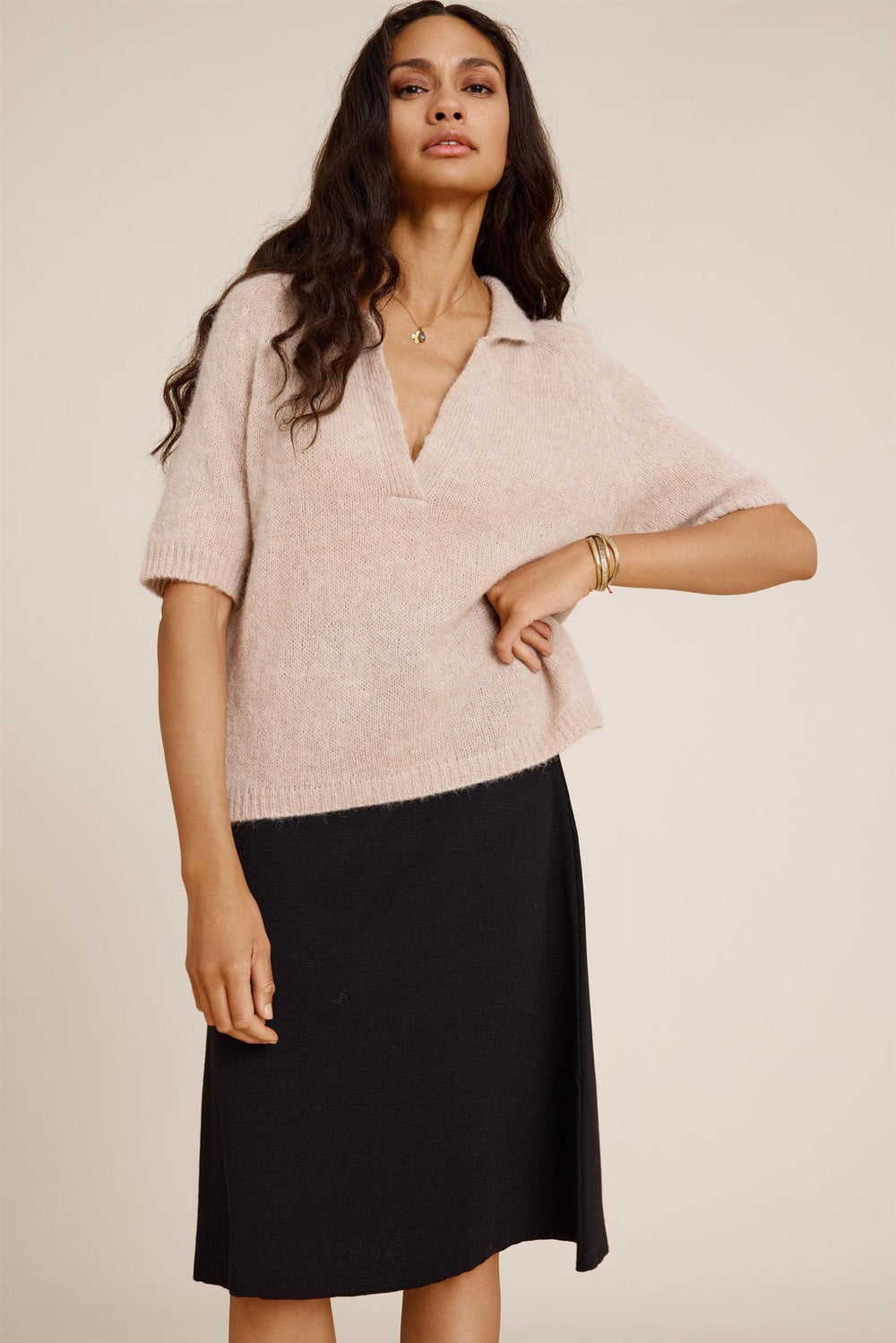 Kortermet cashmere genser pink melange