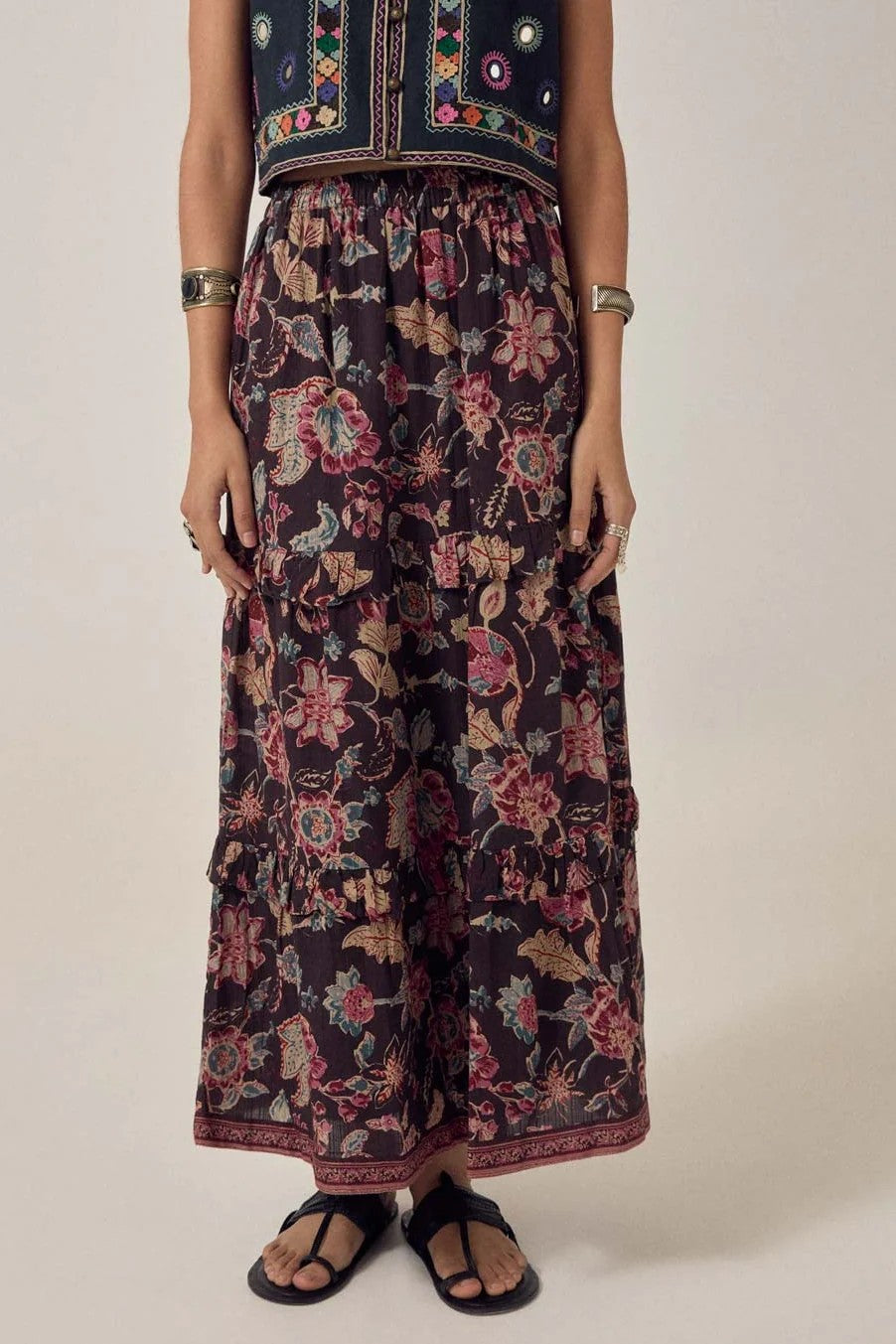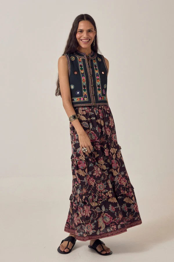 Bohemsk langt skjørt med kapper og underskjørt.