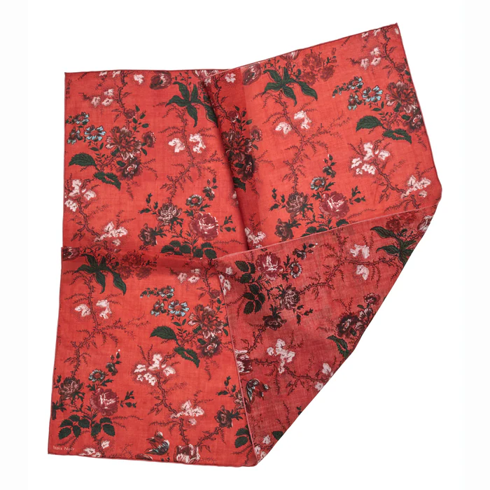 Kantene er rullet og sydd for hånd – en tidkrevende prosess som gir skjerfet en veldig fin kant.