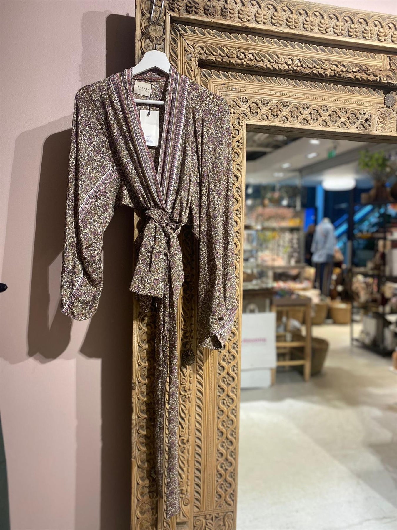 Omslagskjole sydd av vintage saristoffer. Hvert plagg er unikt.