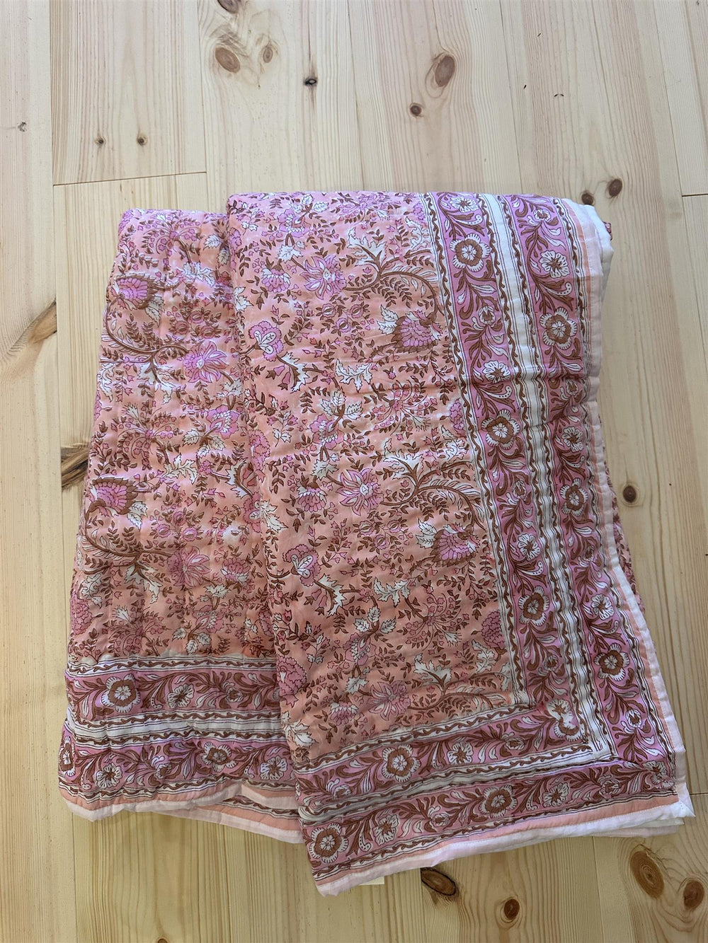 Quilt 130x180 cm mørkblå natur/korall mønster