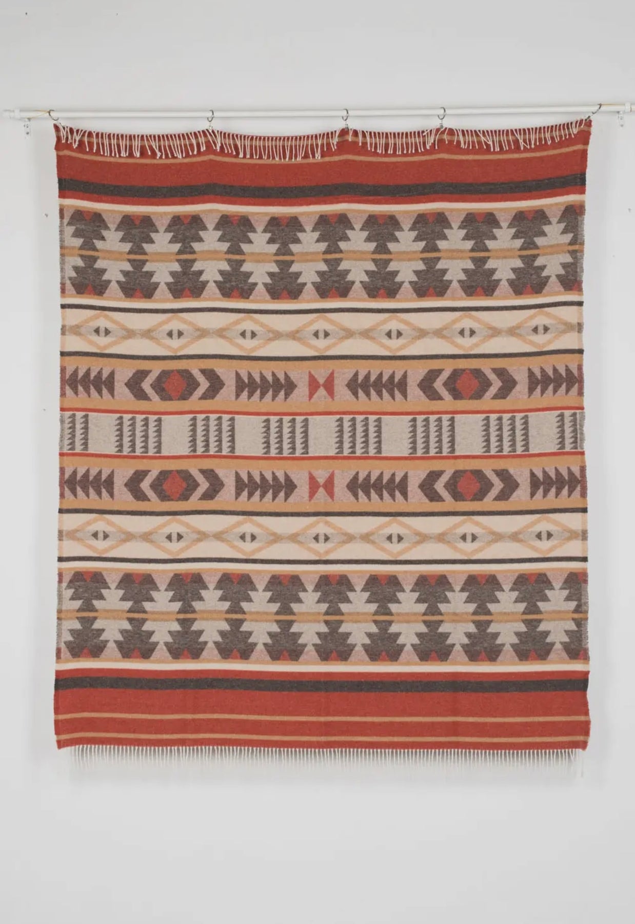Navajo jaquardvevet pledd laget av resirkulerte materialer.