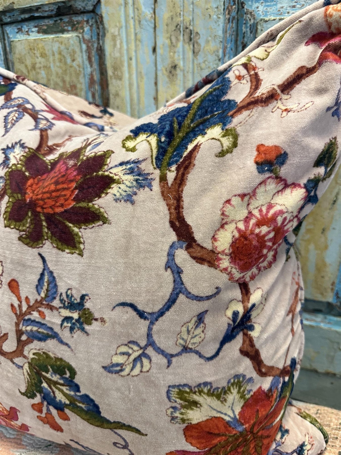 Putetrekk i vakkert blomsterprint på velur med rolour kant.