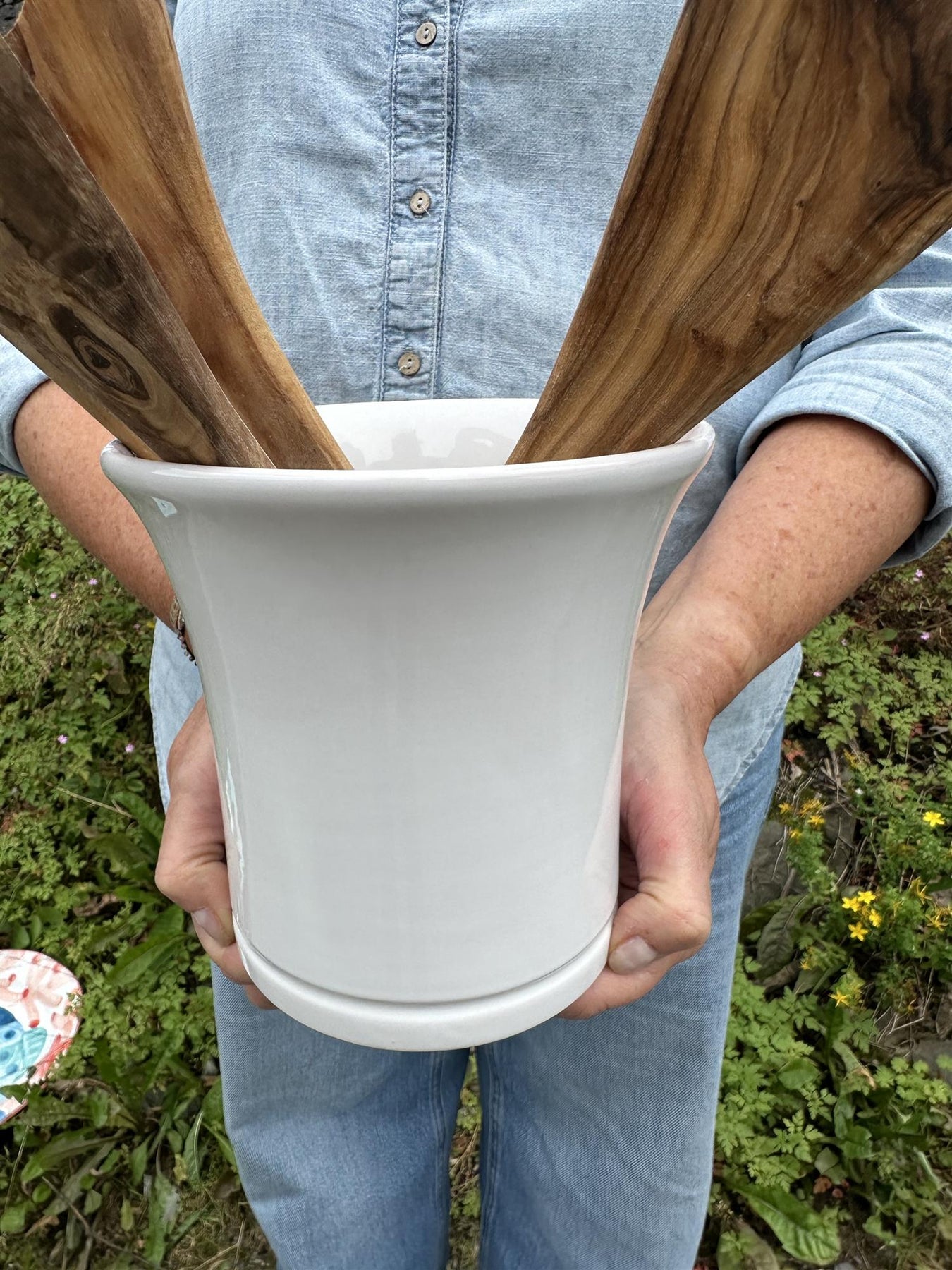 Krukke til kjøkkenredskap med vakker glasur. Pynter opp på kjøkkenet.
