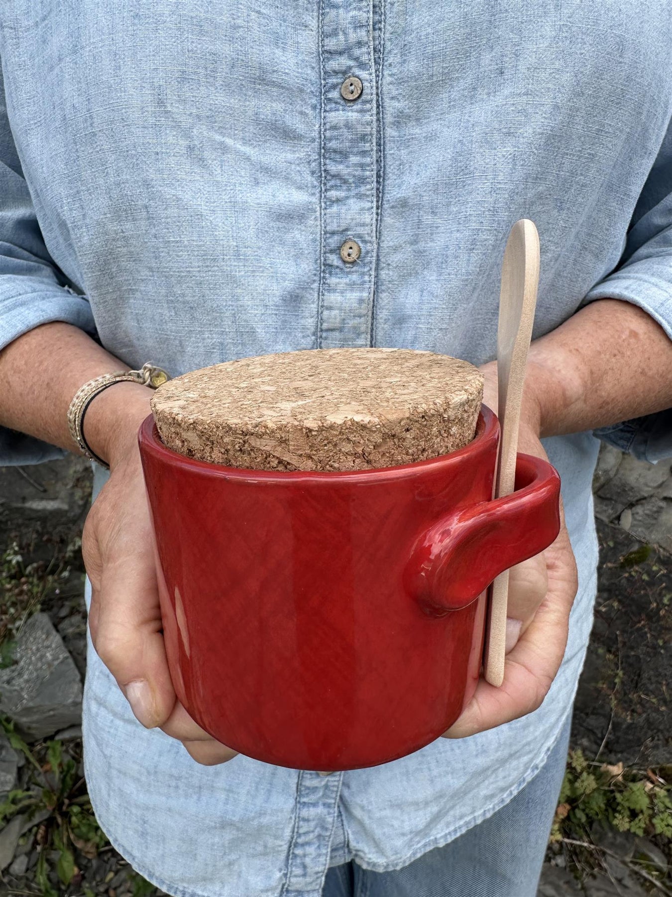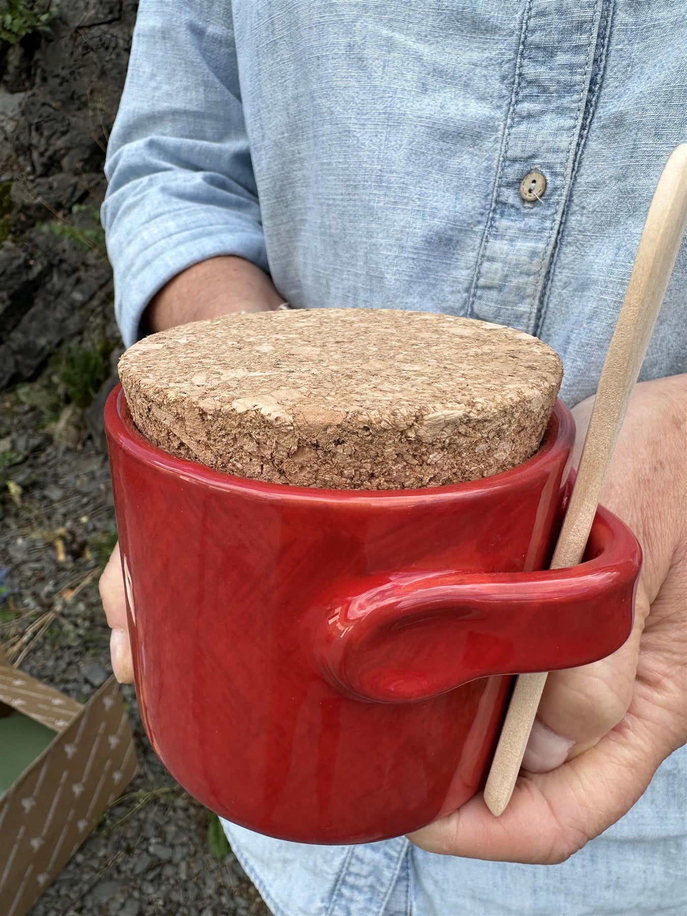 Krukke med kork lokk og skje. Perfekt til sukker, parmesan m.m.