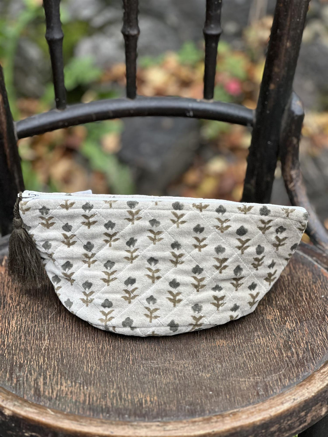 Toalettmappe M vintage kantha stoff hvit Nr 1