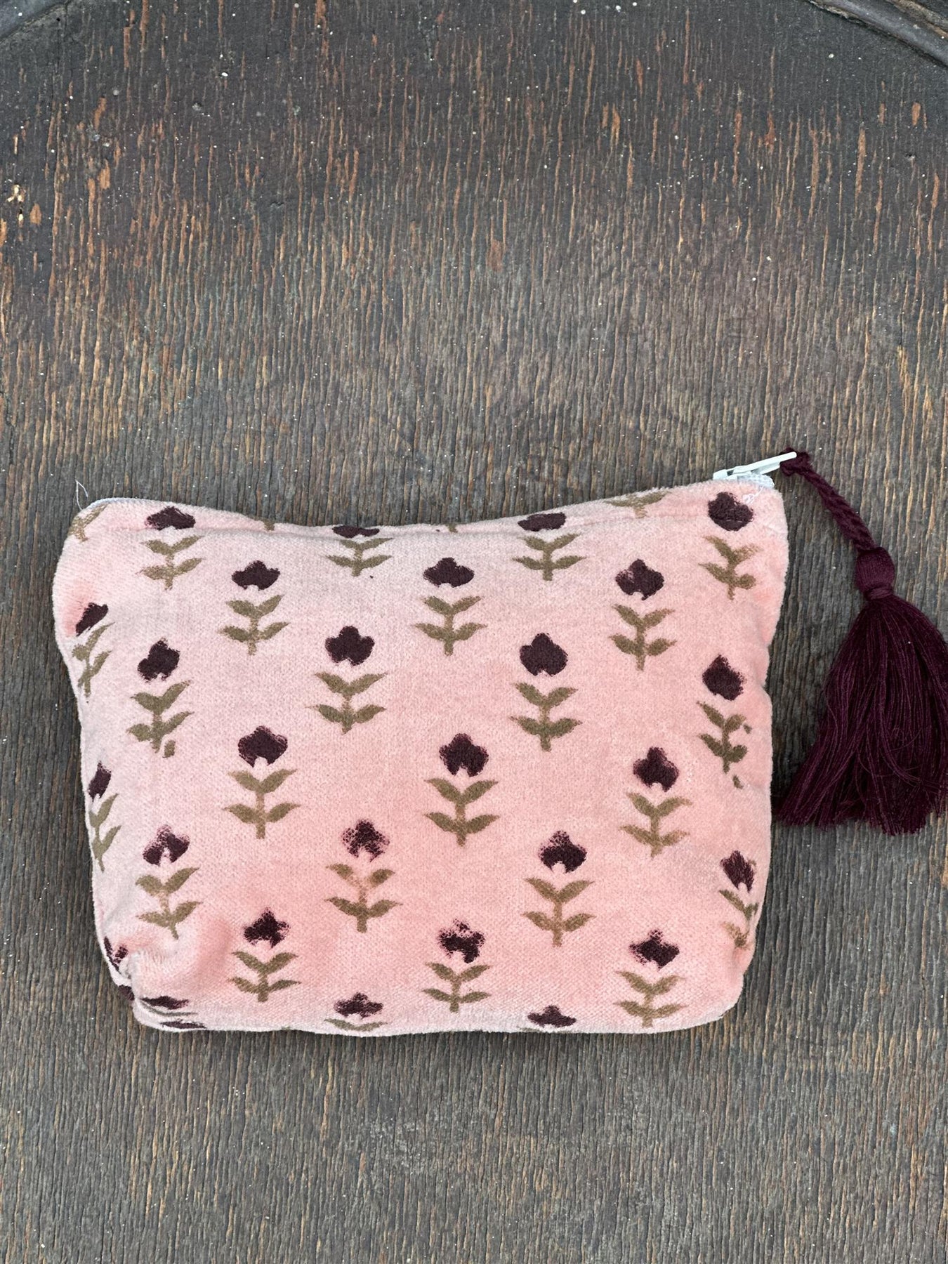 Søt liten pung i bomullsvelur med blokktrykket mønster.