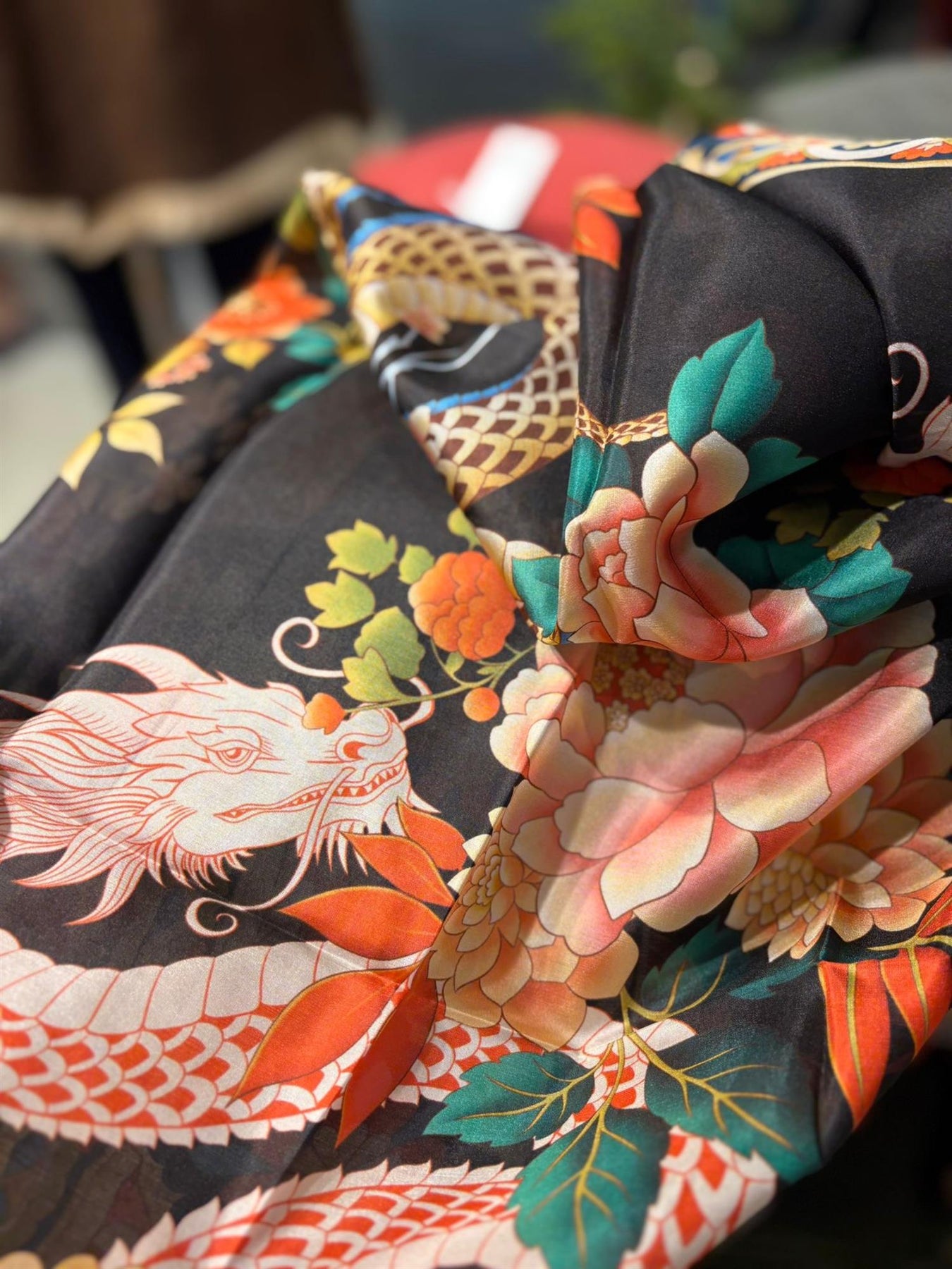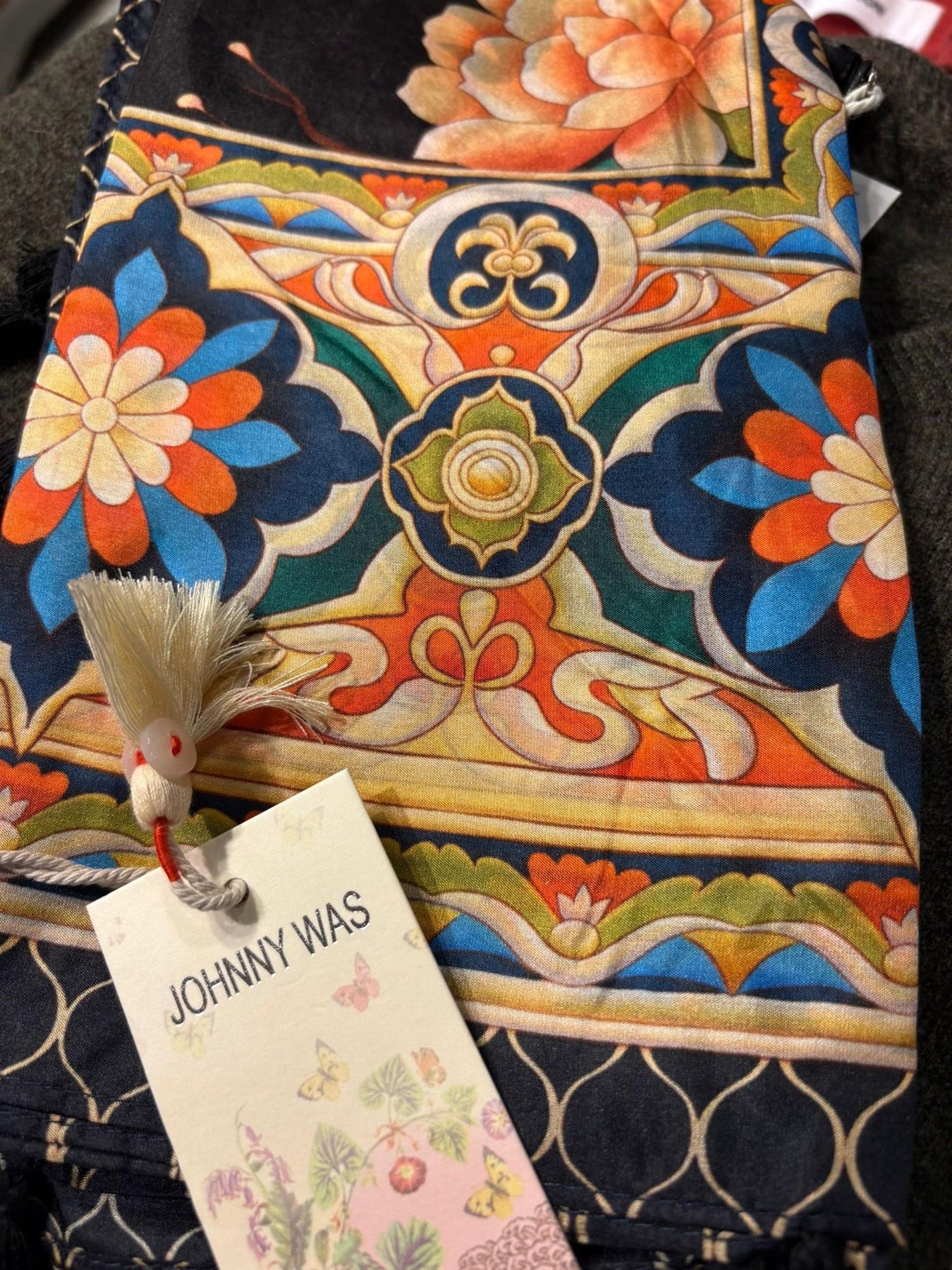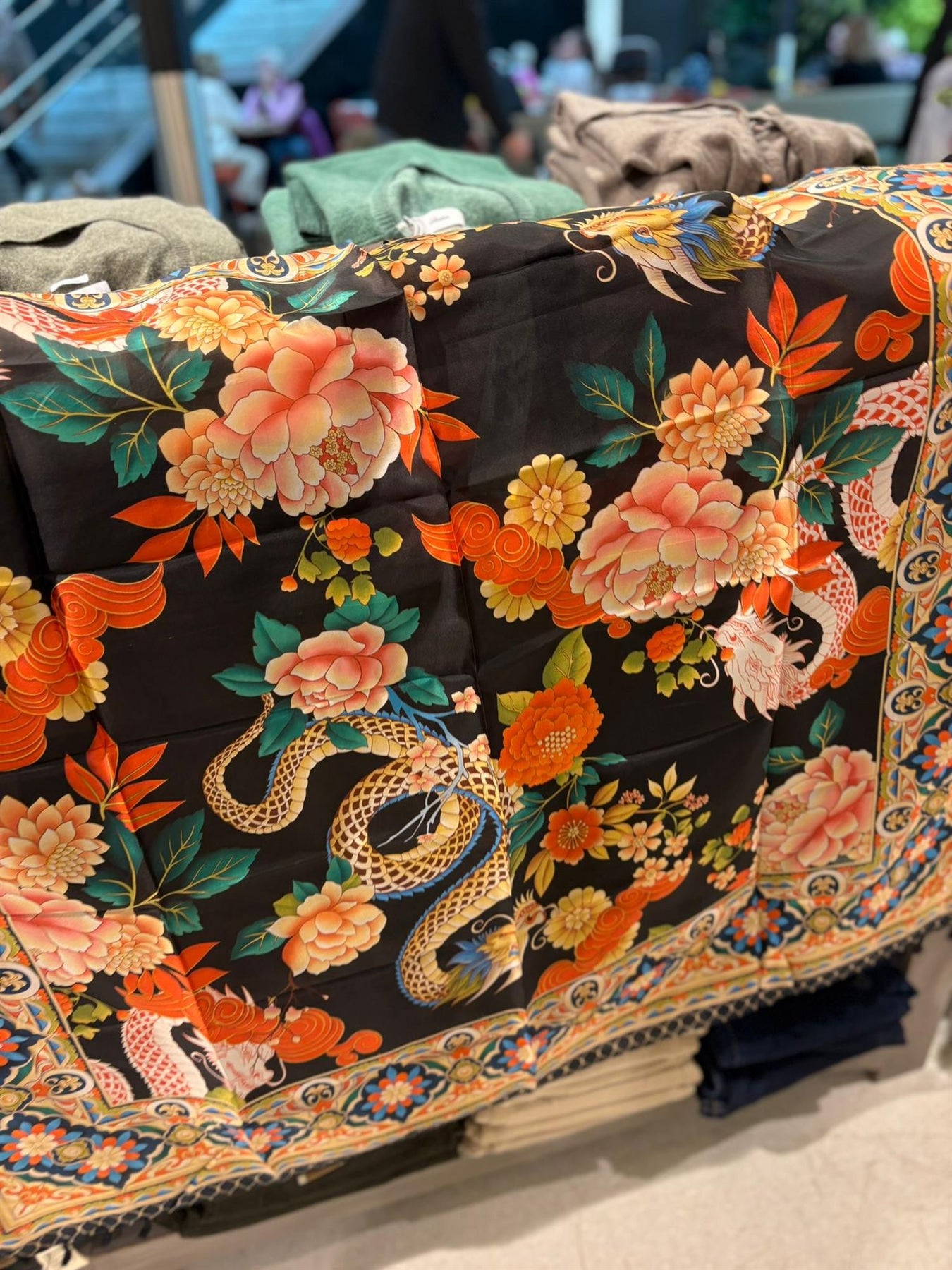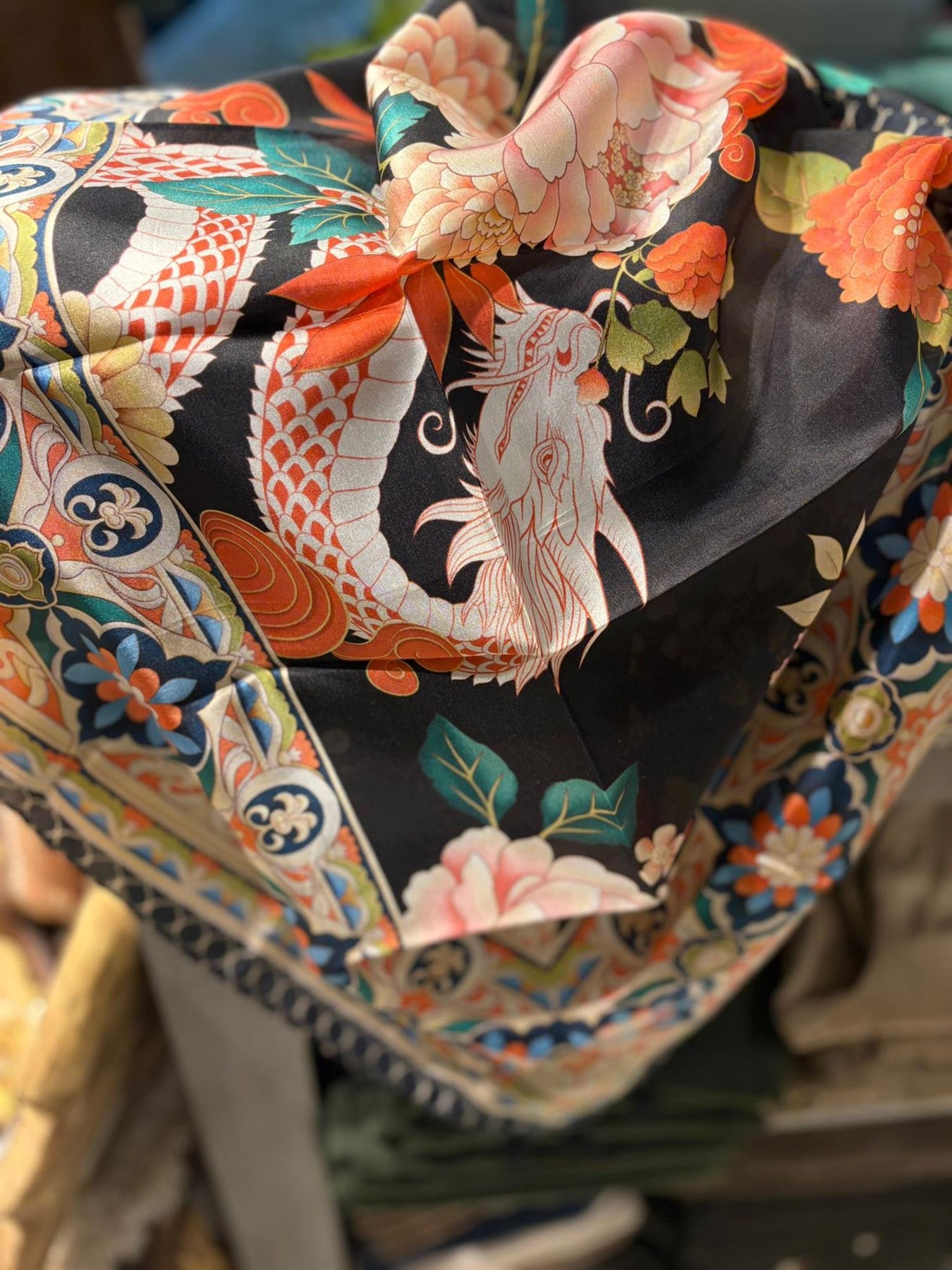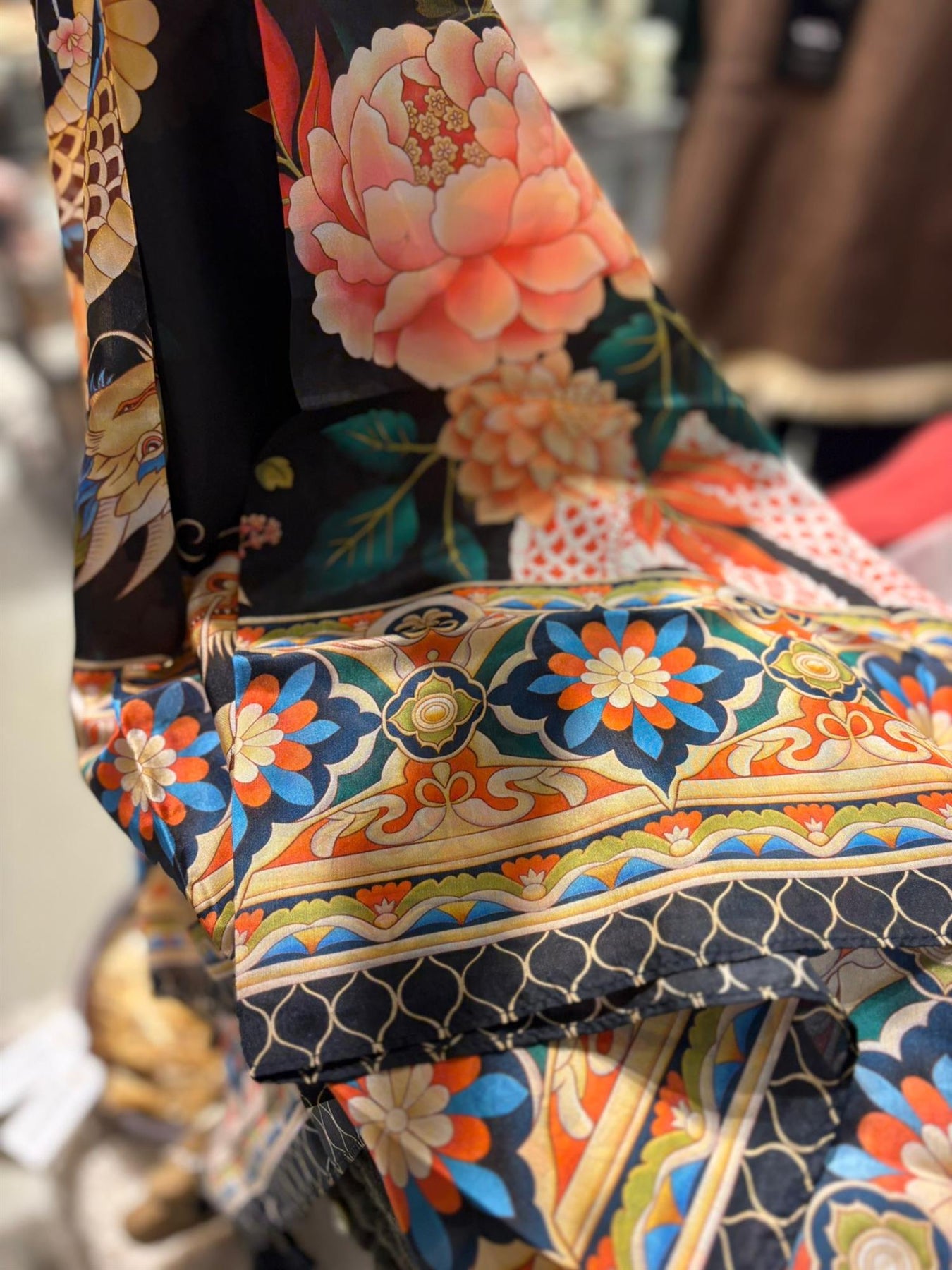Vakkert skjerf med dusker i alle 4 hjørner.