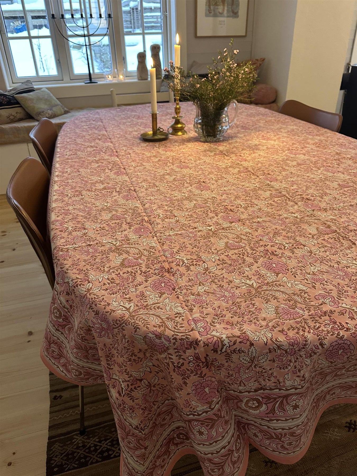 Duk Fleur pink 150 x 250 cm blokktrykket