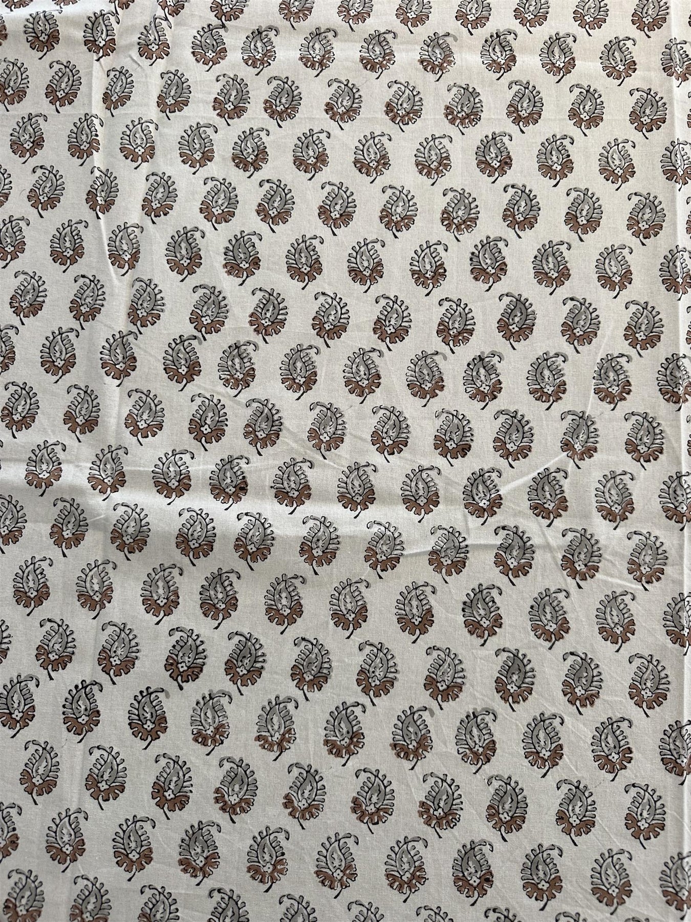 Farge: hvit bunnfarge, brunt og grått mønster