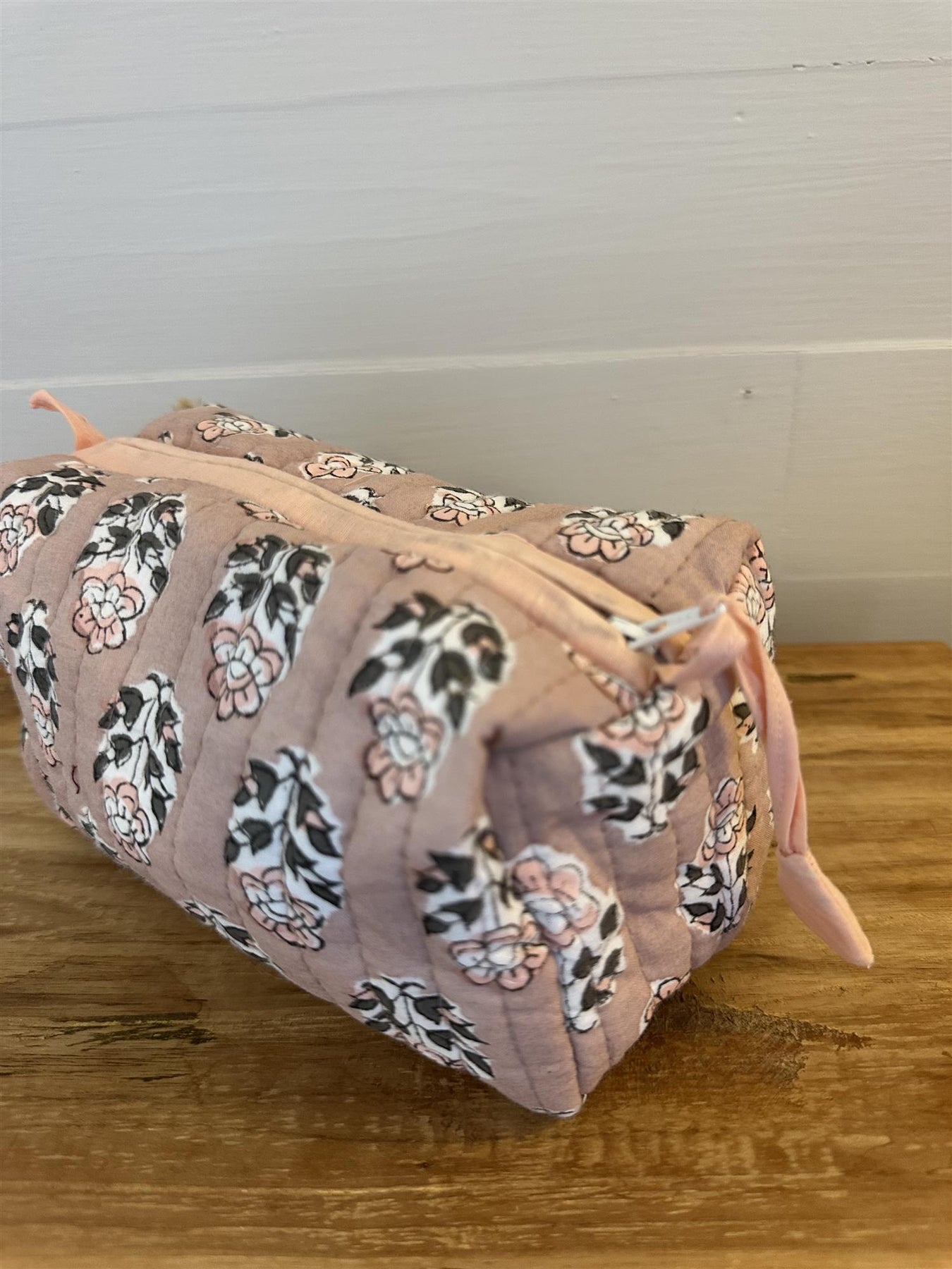 Sminkepung med blokktrykket mønster - trykket for hånd. Foret med plast.