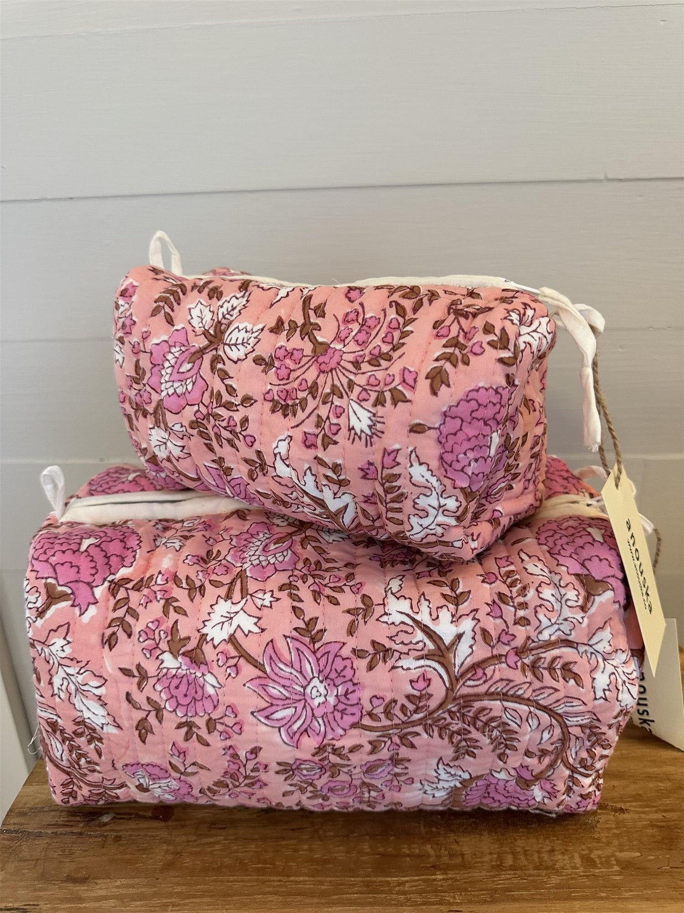 Sminkepung med blokktrykket mønster - trykket for hånd. Foret med plast.
