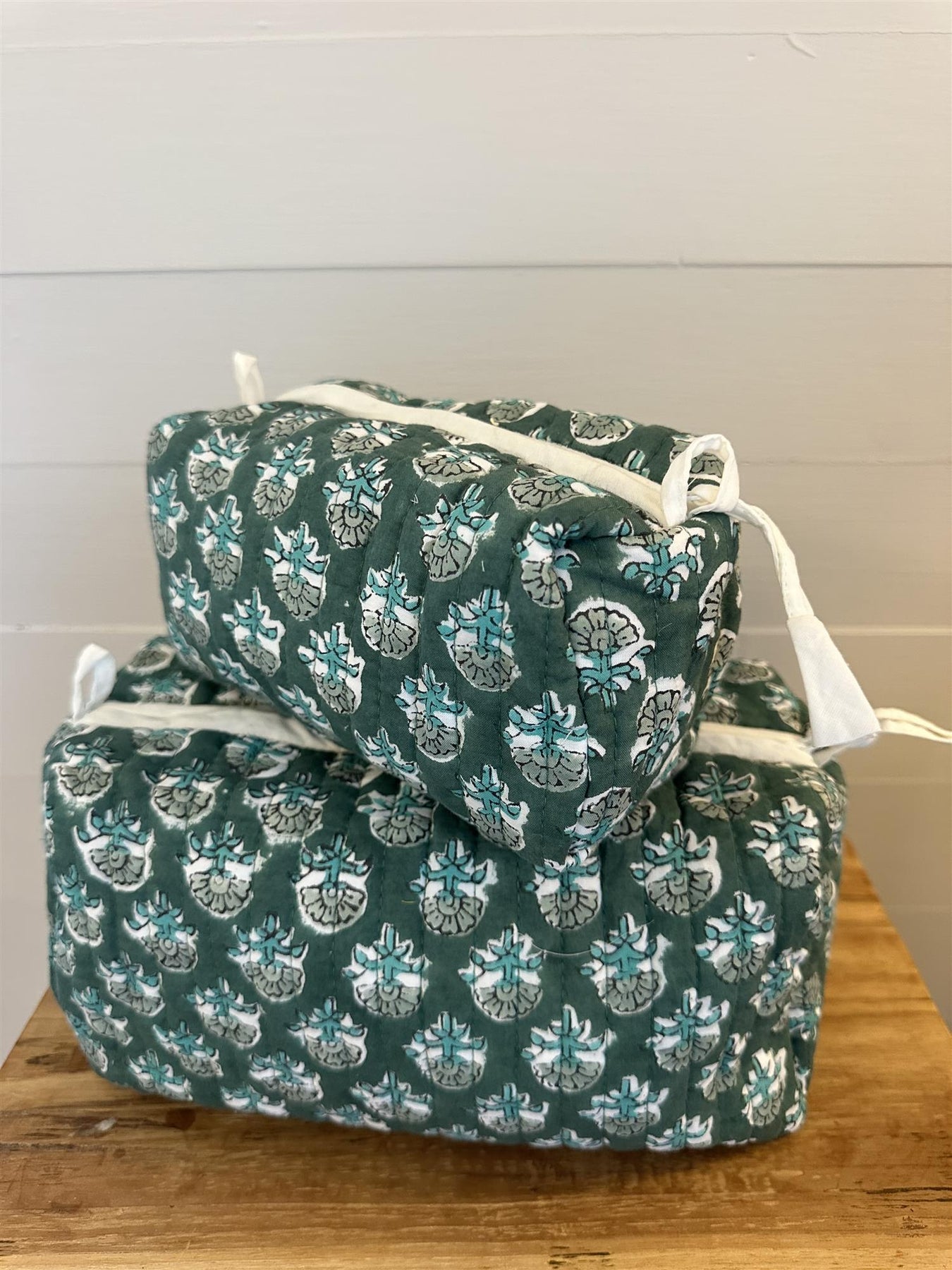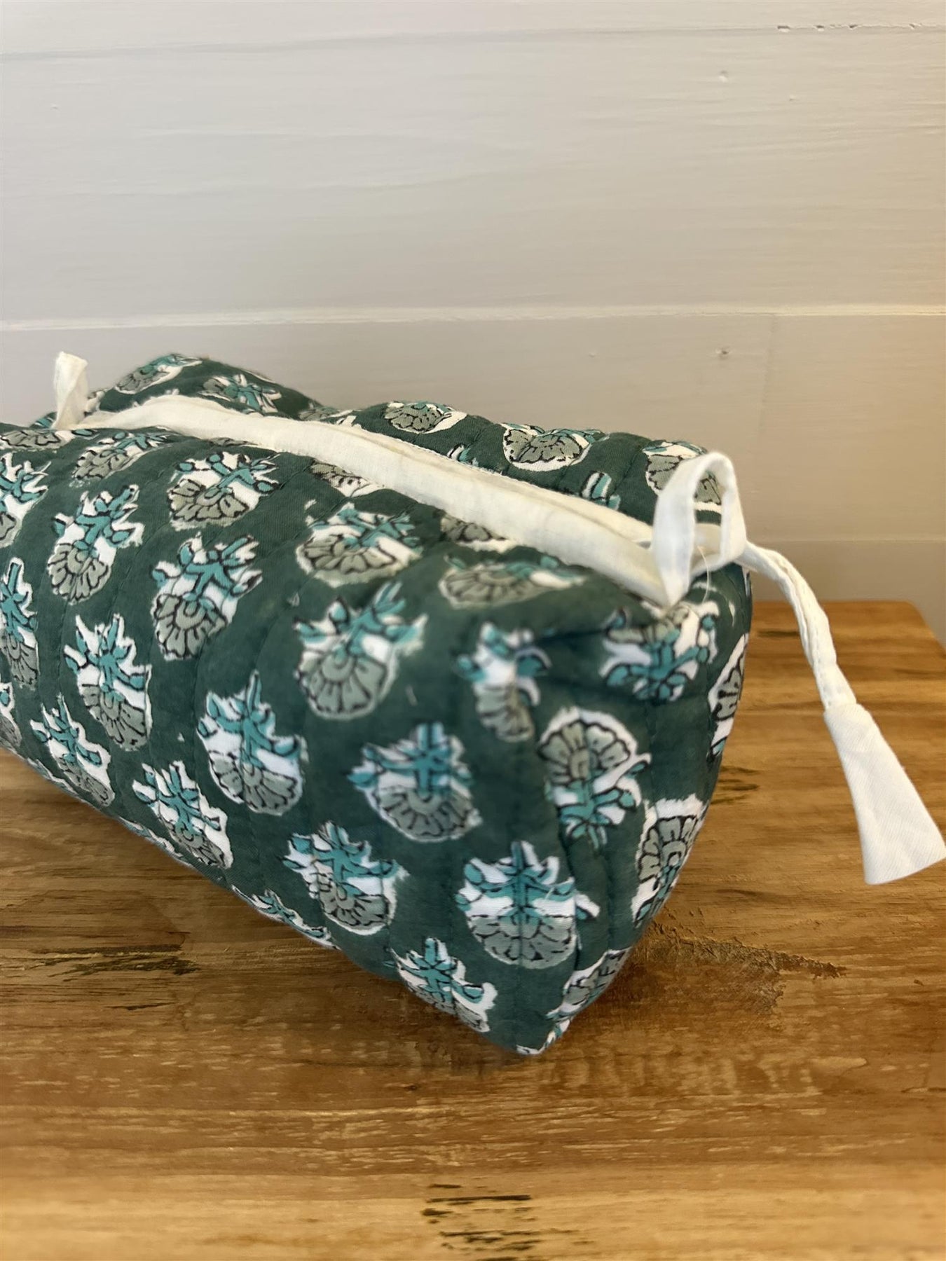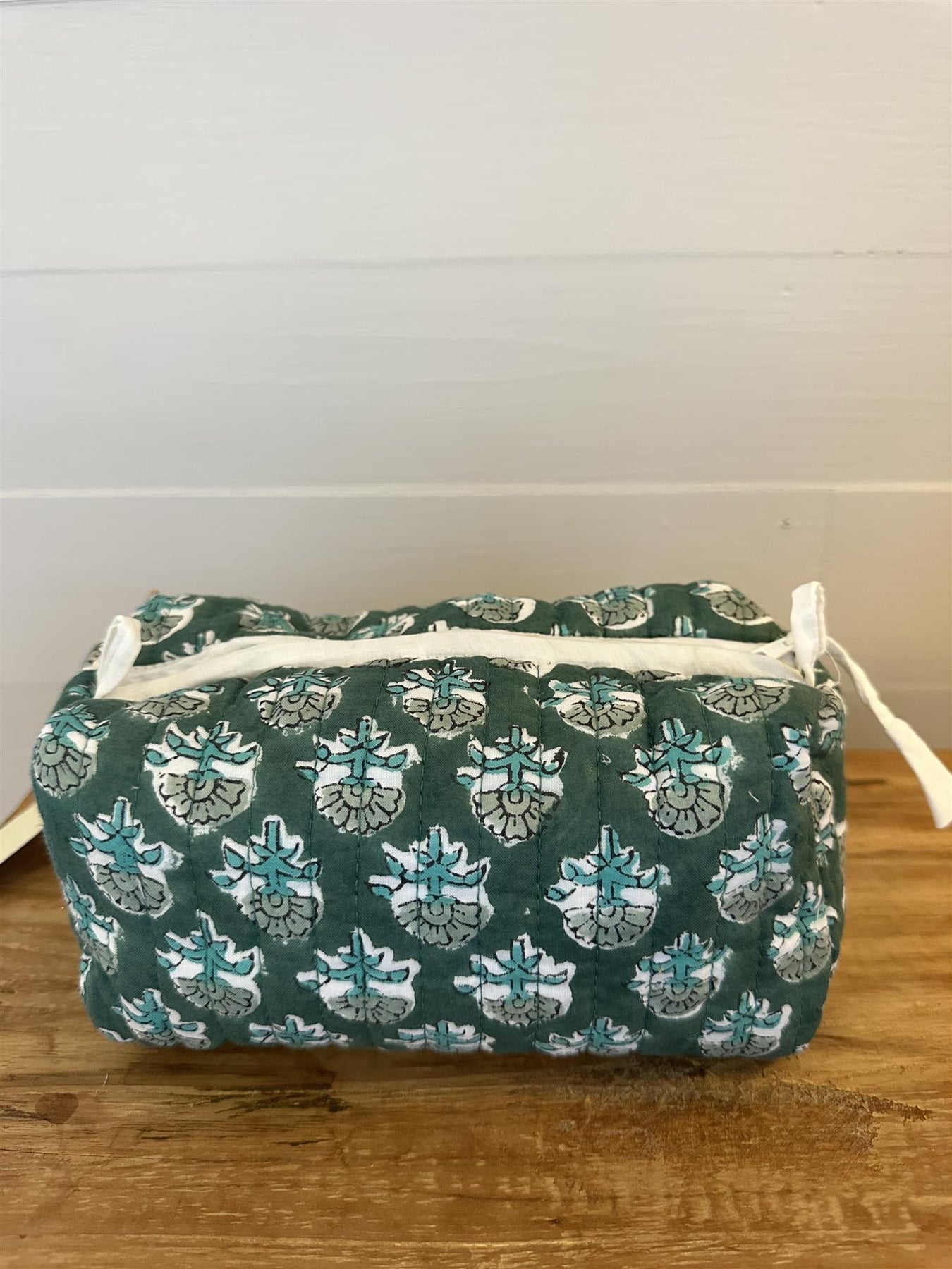Sminkepung med blokktrykket mønster - trykket for hånd. Foret med plast.