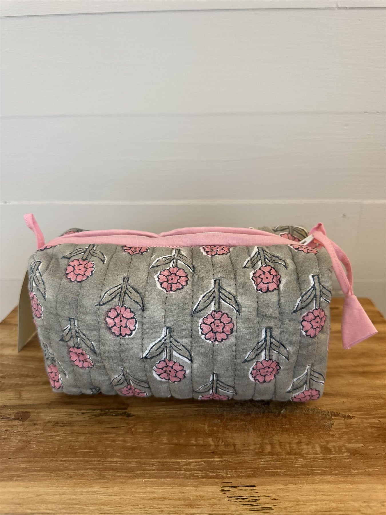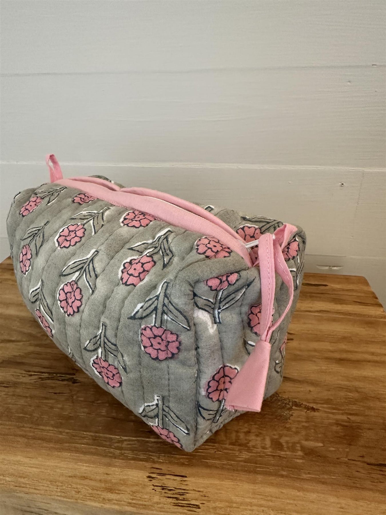 Sminkepung med blokktrykket mønster - trykket for hånd. Foret med plast.